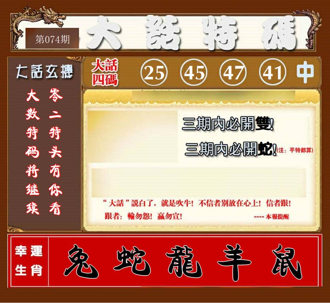 | 074期推荐⑤肖:兔虎鼠牛鸡 |